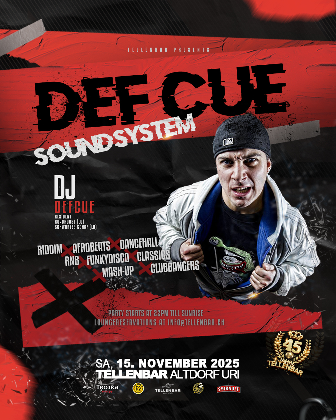 DJ DEF CUE (Roadhouse / Schwarzes Schaf LU) bringt den Sound, der dich bis zum Sunrise trägt. 🌙💫